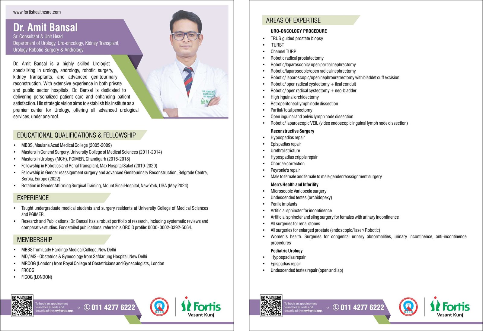 Senior Consultant & Unit Head – Urology at Fortis, specializing in robotic urology and kidney transplant surgery.