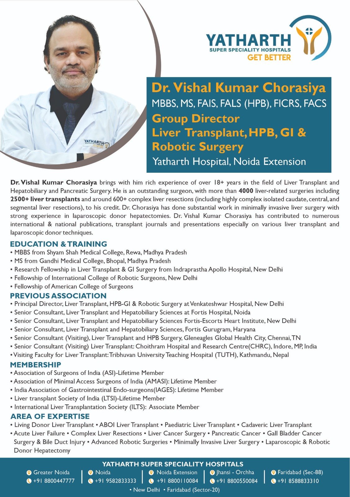 Group Director – Liver Transplant & HPB Surgery at Yatharth Hospital with 18+ years’ experience in advanced liver care.